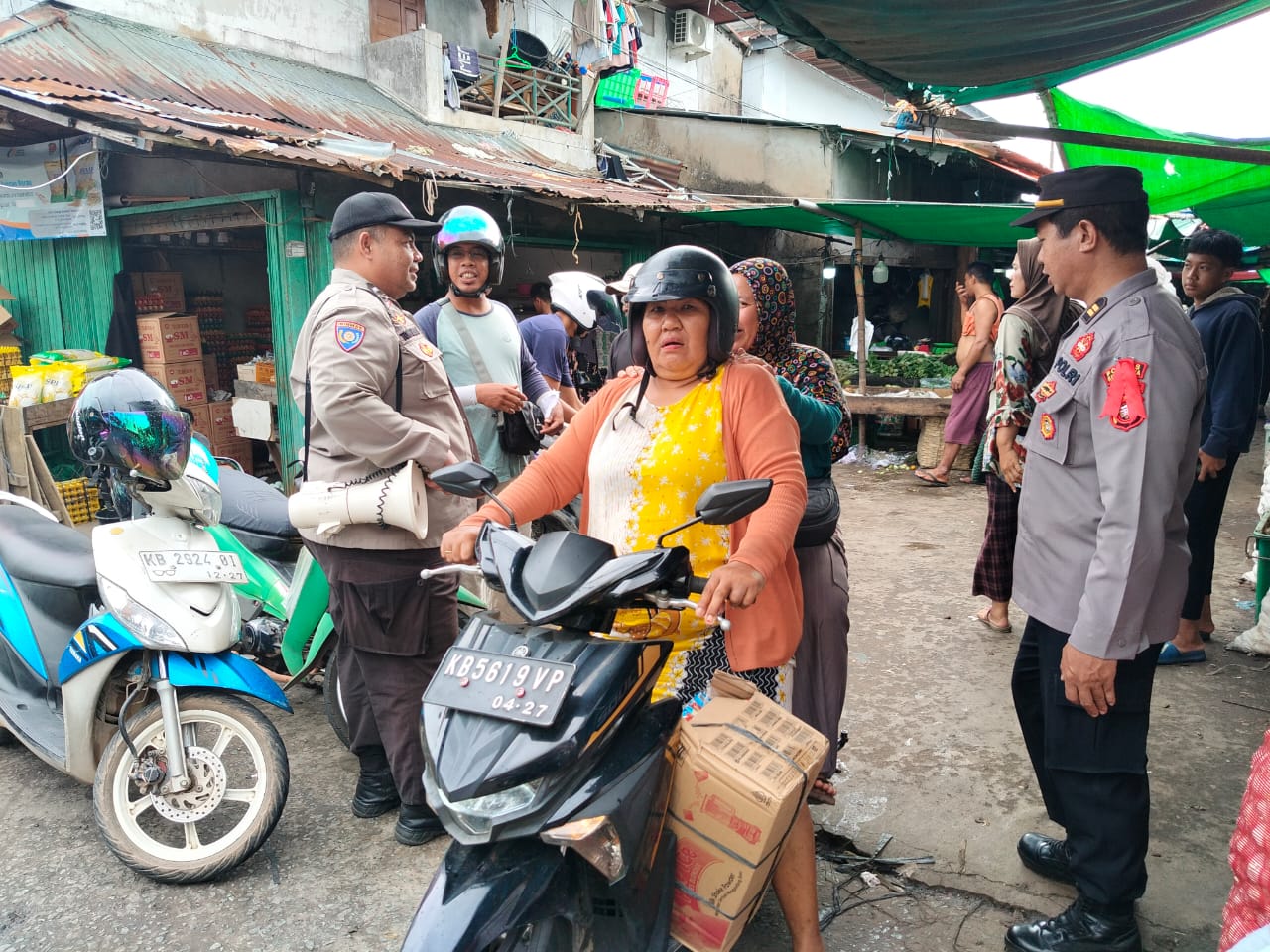 Dalam kegiatan tersebut, personel kepolisian tampak berinteraksi langsung dengan para pedagang dan pengunjung pasar. Dengan menggunakan megaphone, petugas memberikan edukasi mengenai kewaspadaan terhadap tindak kriminalitas seperti pencopetan dan peredaran uang palsu di tengah padatnya aktivitas pasar.